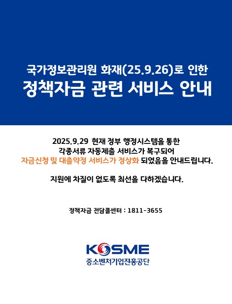 * 정책자금 온라인 신청은 선착순 방식이 아닌 신청기간 내 제출하는 방식입니다.